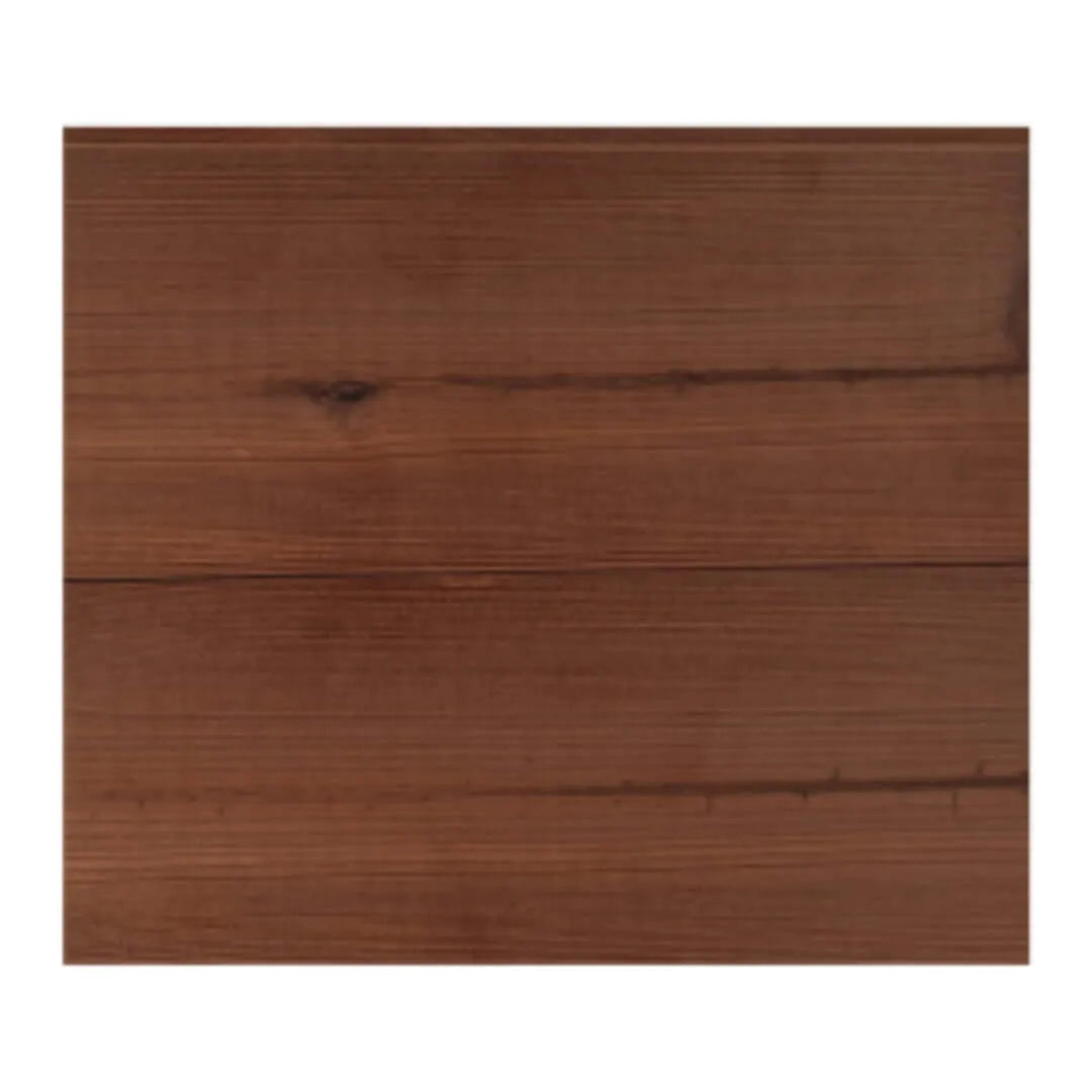 Die dunkelbraune, thermisch behandelte Kieferndiele ist eine langlebige und attraktive Wahl als Bodenmaterial.