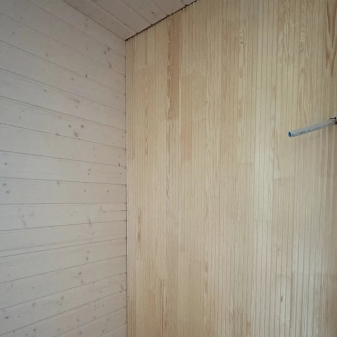 Das vielseitige Dyyni-Paneel eignet sich sowohl als Wand- als auch als Deckenpaneel und kann vertikal oder horizontal montiert werden. Das Paneel eignet sich für alle trockenen Räume im Haus sowie, behandelt, für feuchte Räume wie z. B. die Sauna.