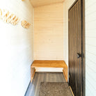 Das profilierte, wellenförmige Inneneinrichtungspanel, das an Sanddünen erinnert, erzeugt ein lebendiges Ergebnis, das sich je nach Licht, Schatten und Blickwinkel verändert. Das Dyyni-Paneel erhielt seinen Namen von den Sanddünen der Kalajoki-Sandbänke, dem Heimatort unserer Fabrik.