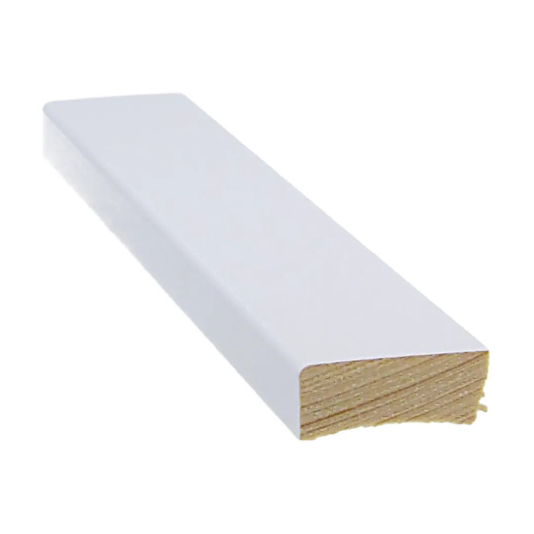 Eine aus astfreiem Kiefernholz gefertigte weiße Fußleiste eignet sich gut für trockene Innenräume.