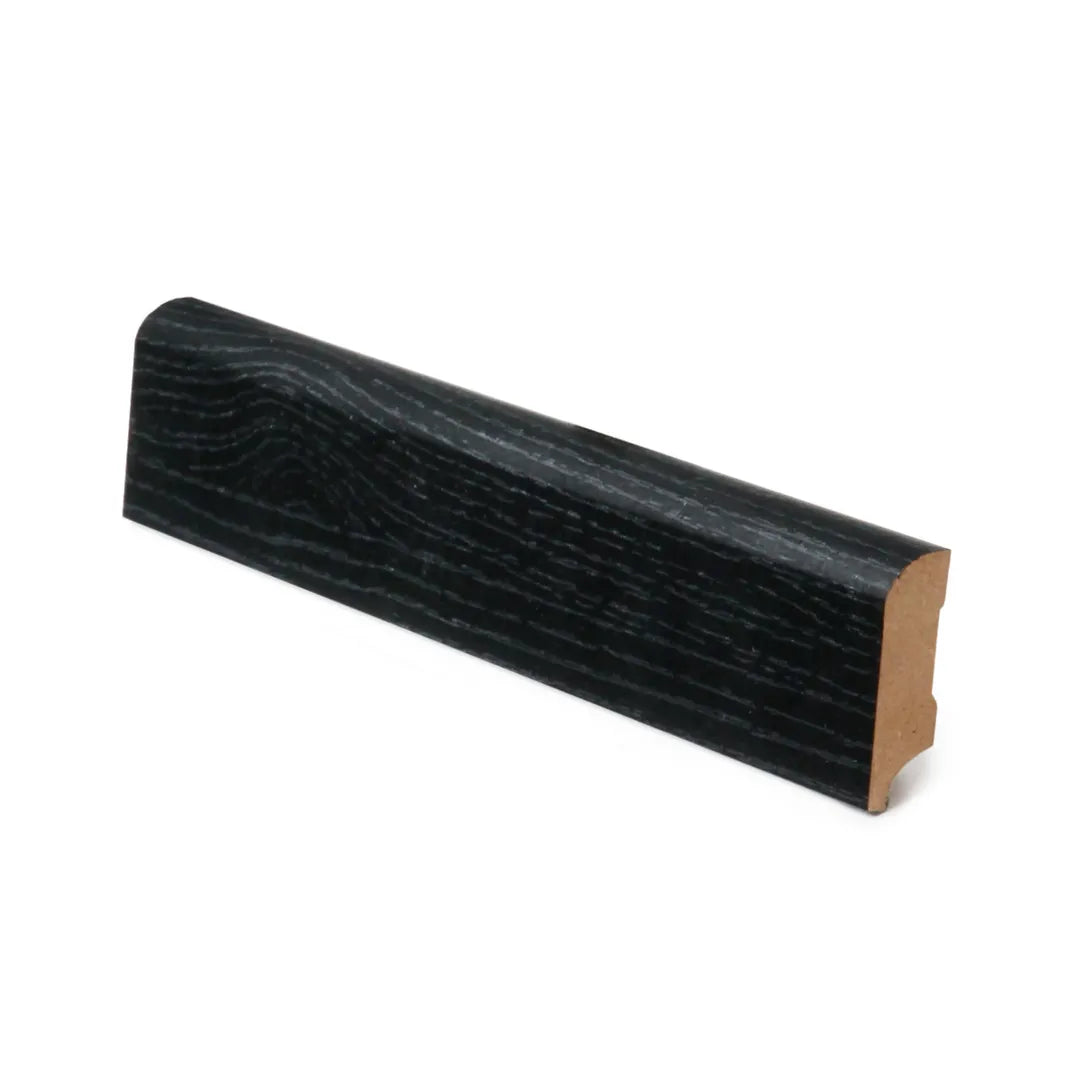 Die MDF-Sockelleiste in Graphitfarbe ist mit langlebigem Melamin beschichtet, das ein gleichbleibend hochwertiges Produkt ohne Farbunterschiede garantiert.