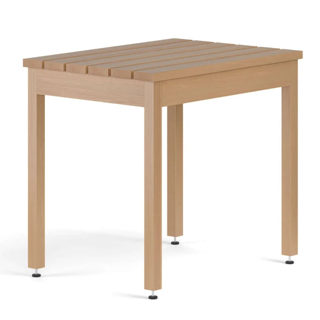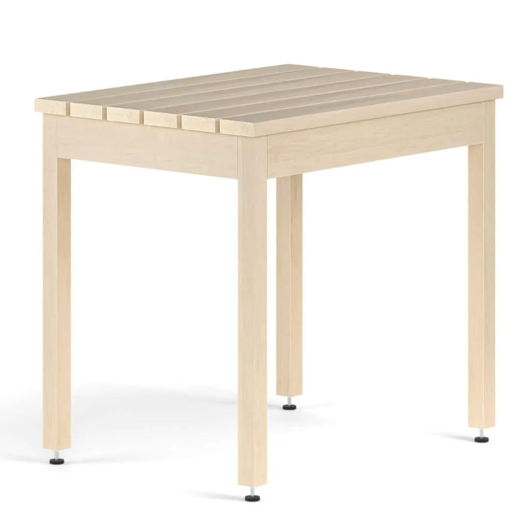 Investieren Sie in Qualität und Stil – bestellen Sie einen Tisch mit Holzgestell für Ihre Saunagarderobe und machen Sie den Raum noch einladender und praktischer.