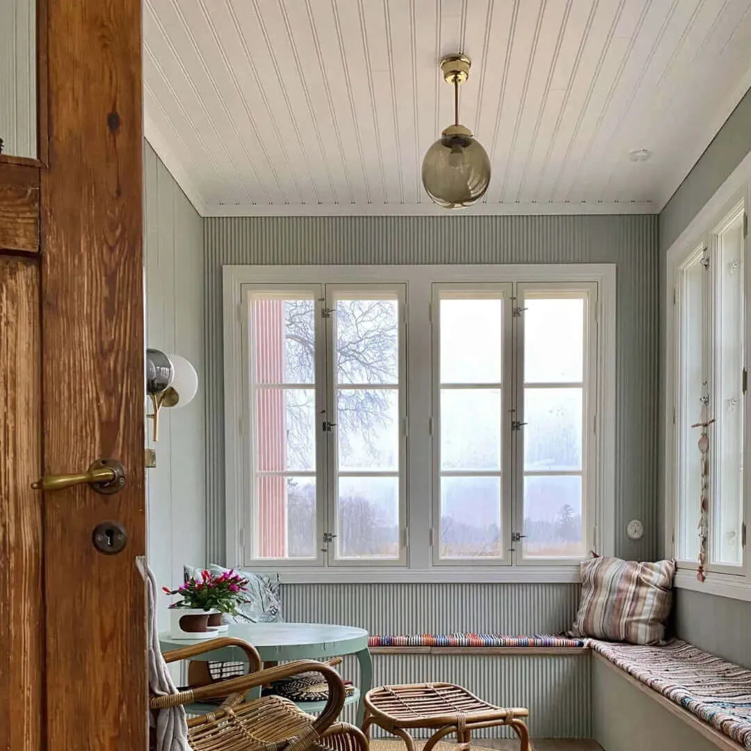 Weißes Helmipaneel geeignet sowohl als Wand- als auch als Deckenpaneel für alle trockenen Räume im Haus sowie für die Decke von Hauswirtschafts- und Badezimmer.