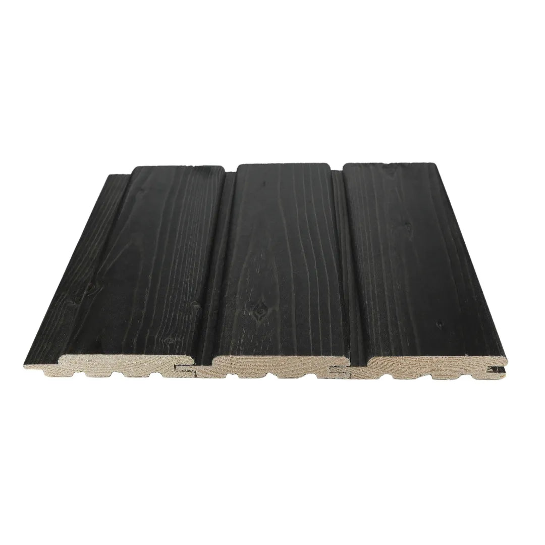 Das Paneel ist mit einem Saunaschutz in der Farbe Kohle behandelt, ohne die natürliche Schönheit des Holzes zu verdecken.