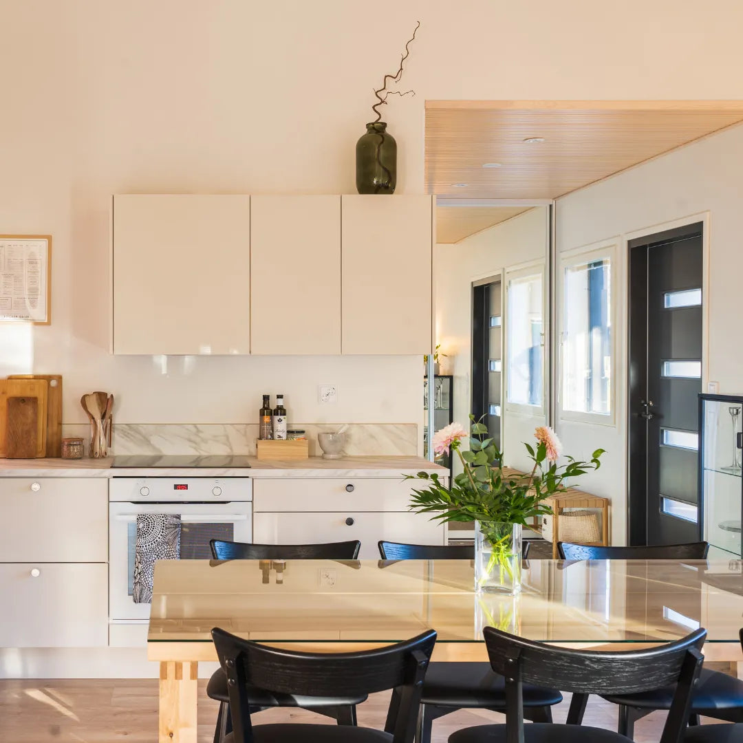 Das Paneel wird aus hochwertigem, nahezu astfreiem, fingerverzahntem heimischem Rohmaterial hergestellt und ist somit eine saubere und gleichmäßige Innenverkleidung. Das Paneel ist dezent mit Weißlack behandelt, ohne die natürliche Schönheit des Holzes zu verdecken.