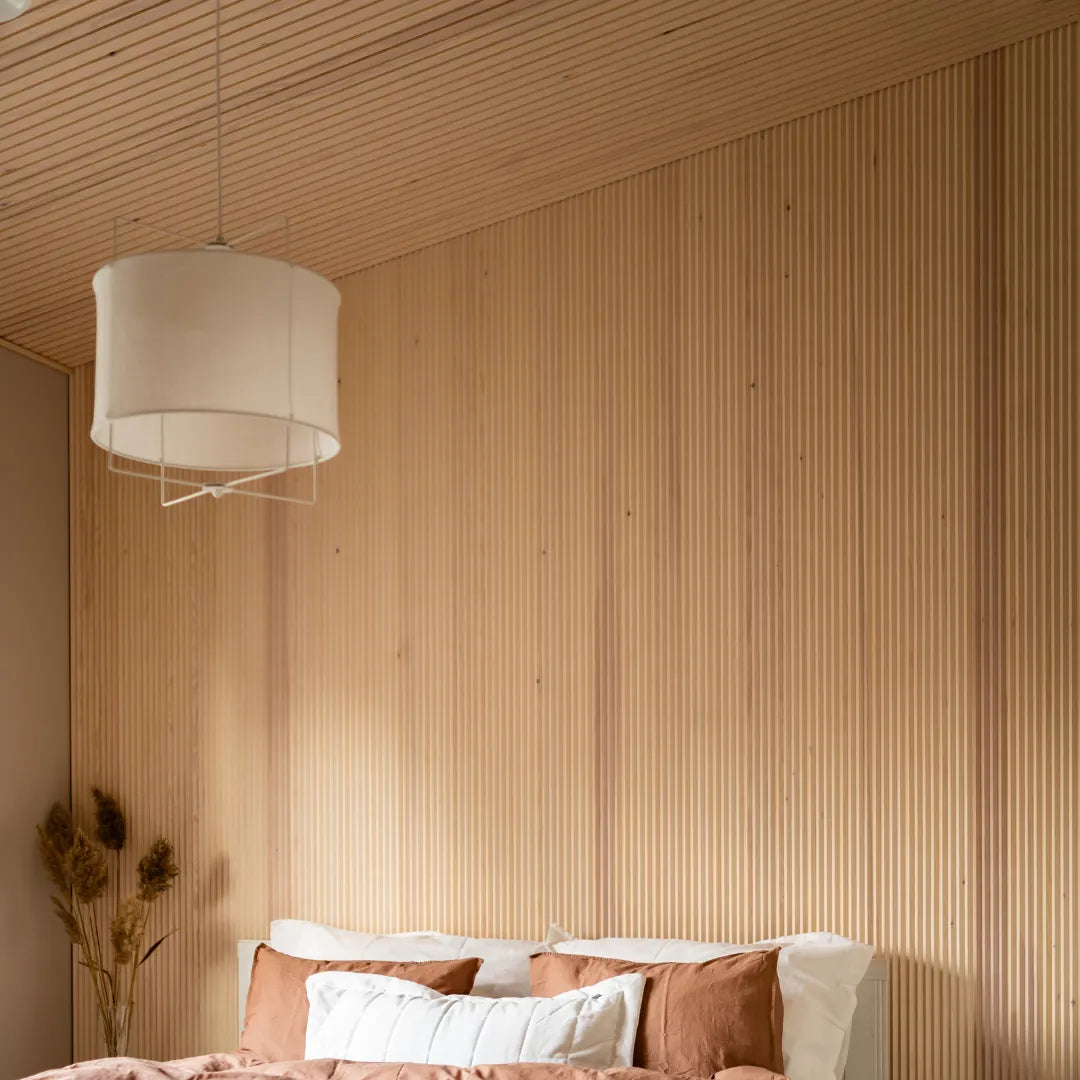 Das Lamellenpaneele eignet sich für alle trockenen Räume im Haus sowie für die Badezimmerdecke. Das profilierte Latten-Design des Dekorpaneels erzeugt ein lebendiges Ergebnis, das je nach Licht, Schatten und Blickwinkel variiert.