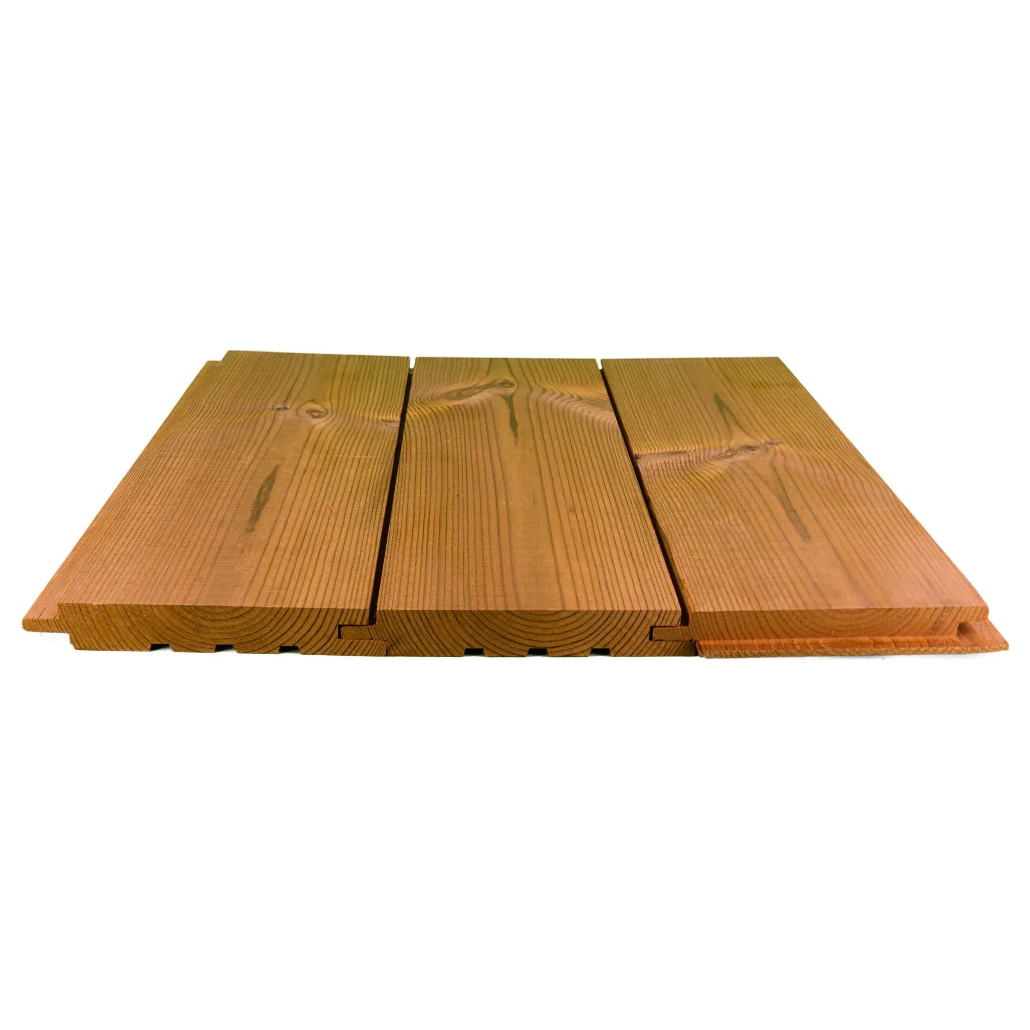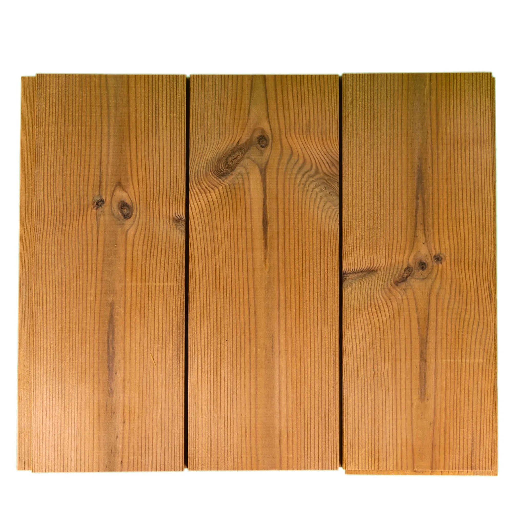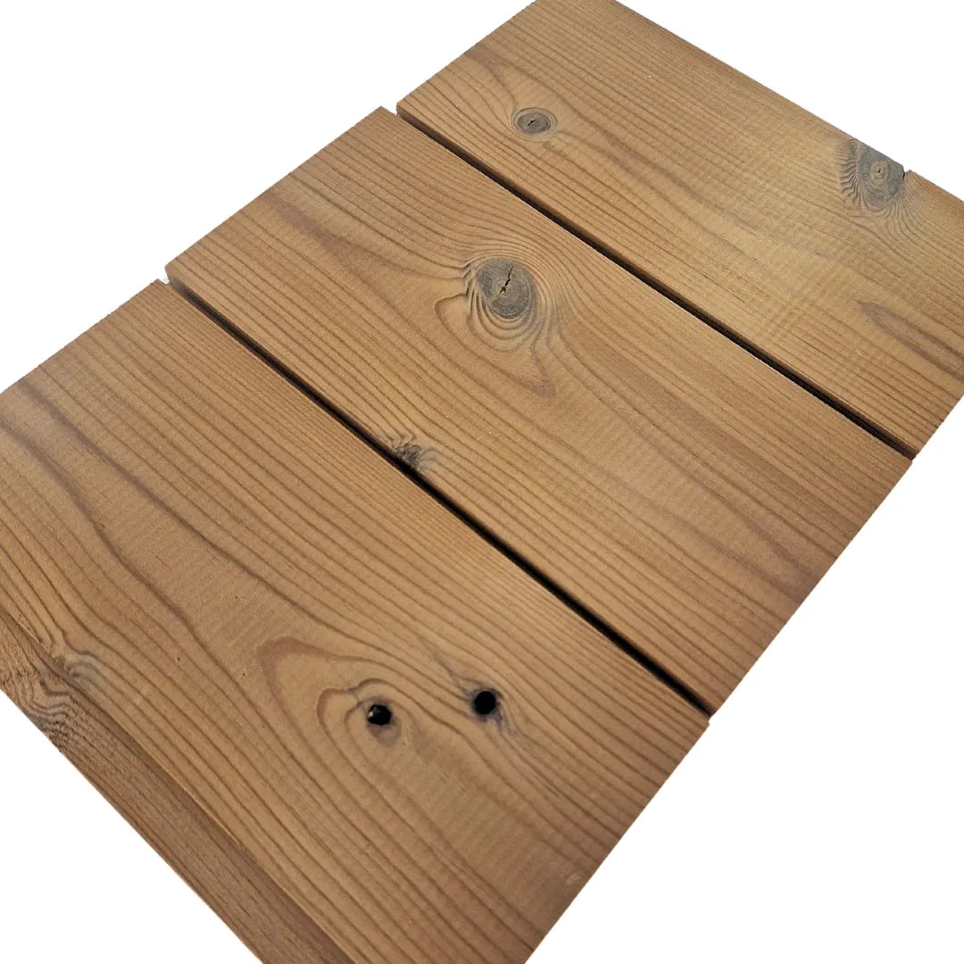 Eine gerade Kante schafft eine stilvolle 4 mm Schattenfuge zwischen den Paneelen. Die Wärmebehandlung verbessert die Fäulnis-, Witterungs- und Wärmedämmeigenschaften des Holzes und reduziert die Feuchtigkeitsbewegungen.