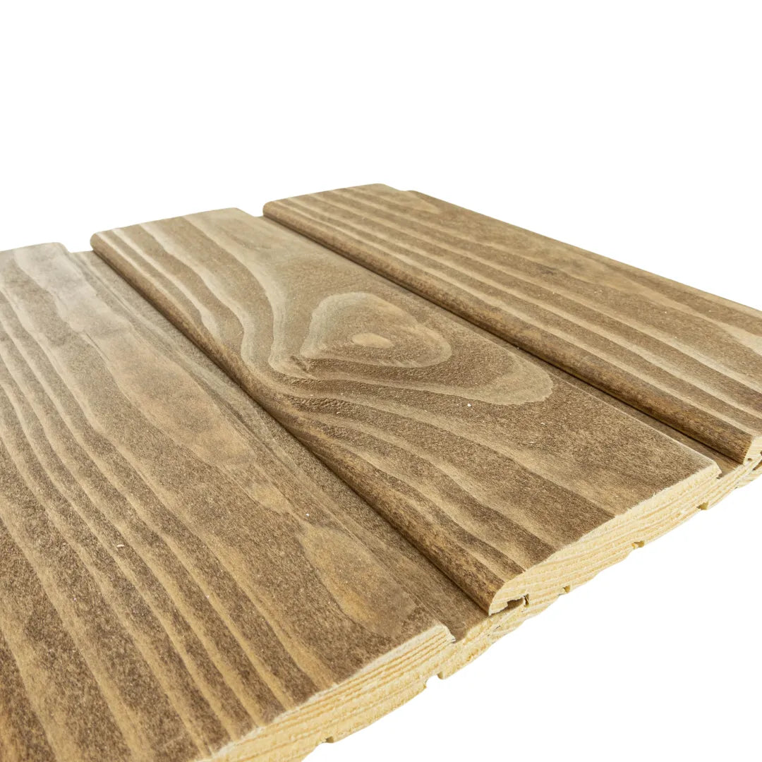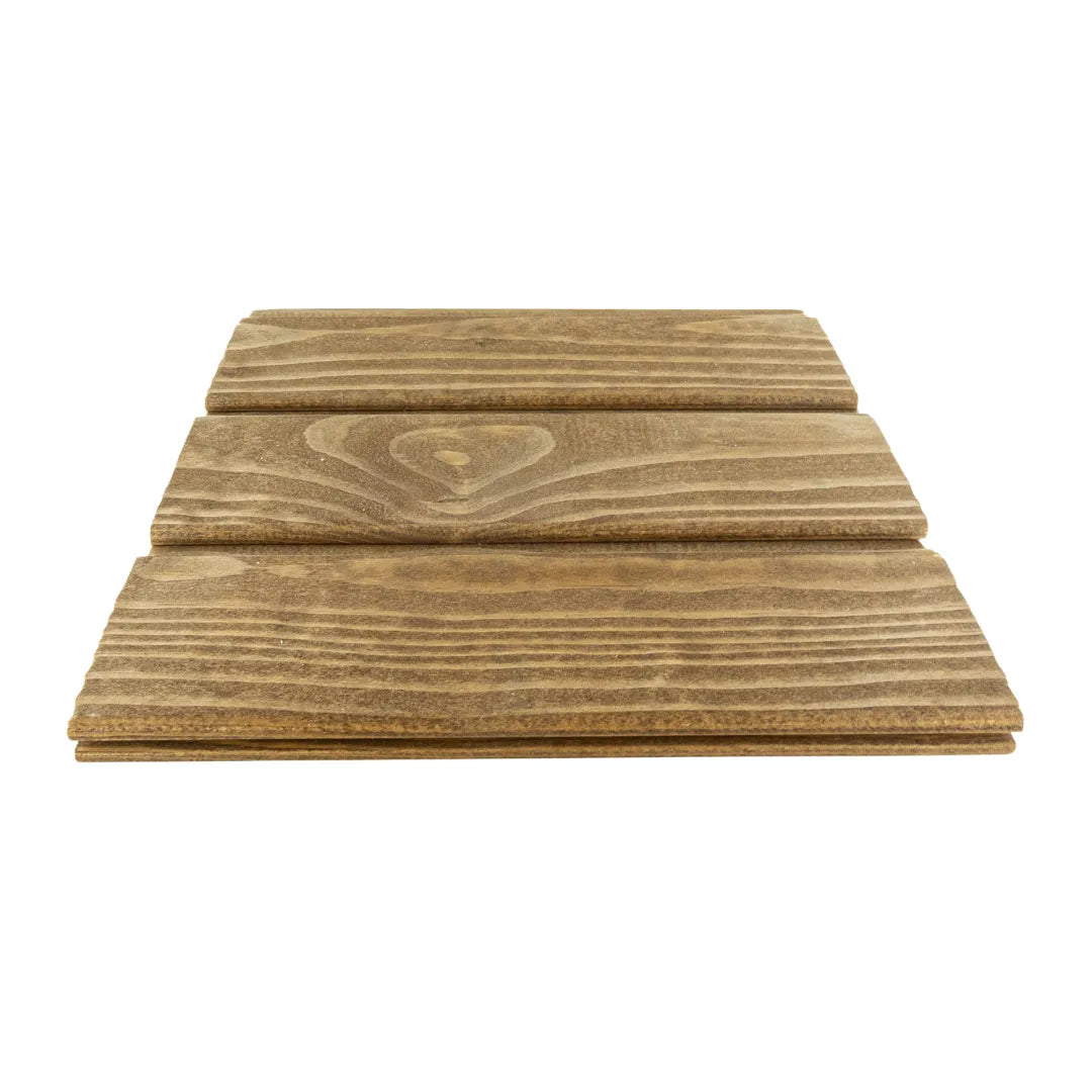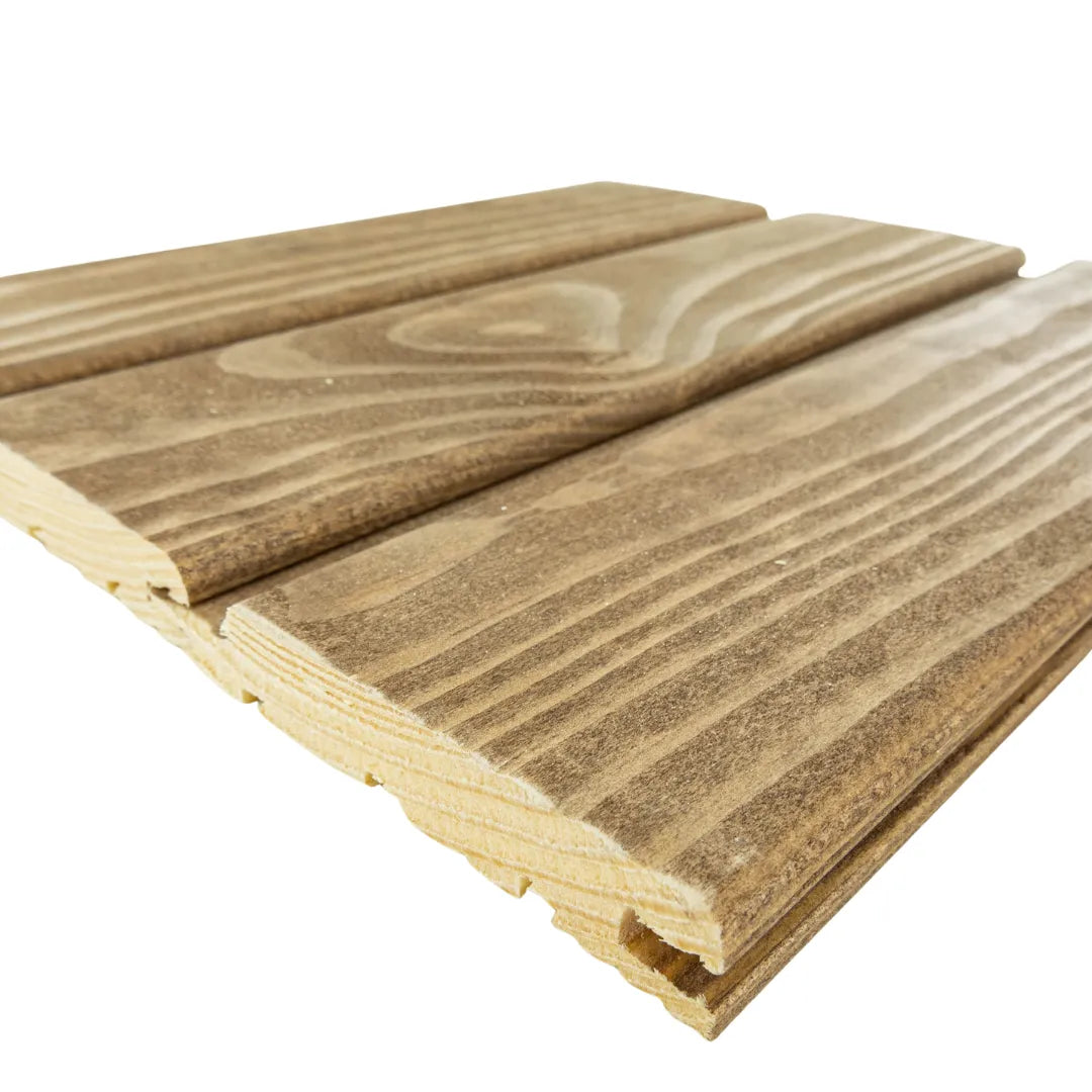 Premium-Saunapaneel aus astarmer Fichte. Das Saunapaneel ist bereits in Thermobehandlungsfarbe behandelt und mit einem Saunaschutz veredelt.