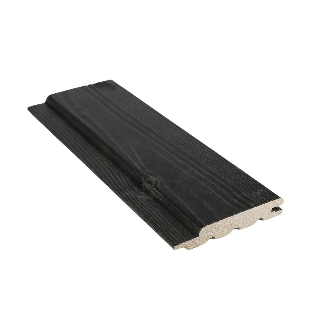Das Paneel ist mit einem Saunaschutz in der Farbe Kohle behandelt, ohne die natürliche Schönheit des Holzes zu verdecken.