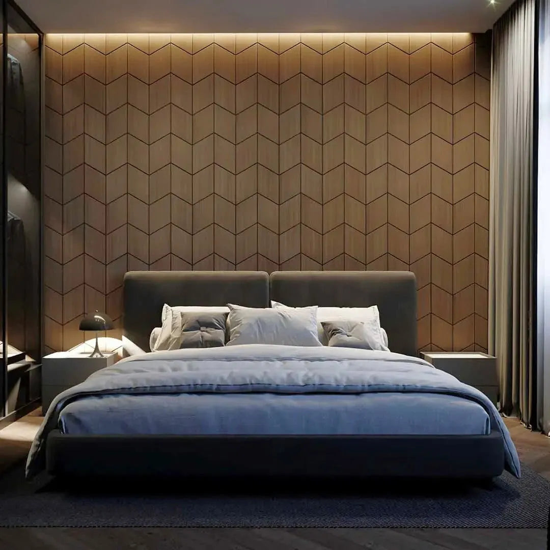 Athena-Wandpaneele sind hochwertige Dekorpaneele von Decnord. Sie bestehen aus hochwertigem Abachi-Holz und wurden speziell entwickelt, um die Ästhetik von Saunen und anderen Innenräumen zu verbessern. Die Paneele sind in drei verschiedenen Ausführungen erhältlich, jede mit ihren eigenen optischen Merkmalen und ihrem eigenen Charakter. Die in die Paneele eingearbeiteten Fliesen sind gekonnt zu Parallelogrammen geformt, was dem Raum ein einzigartiges und faszinierendes Aussehen verleiht und ihm Tiefe und Dreidimensionalität verleiht.