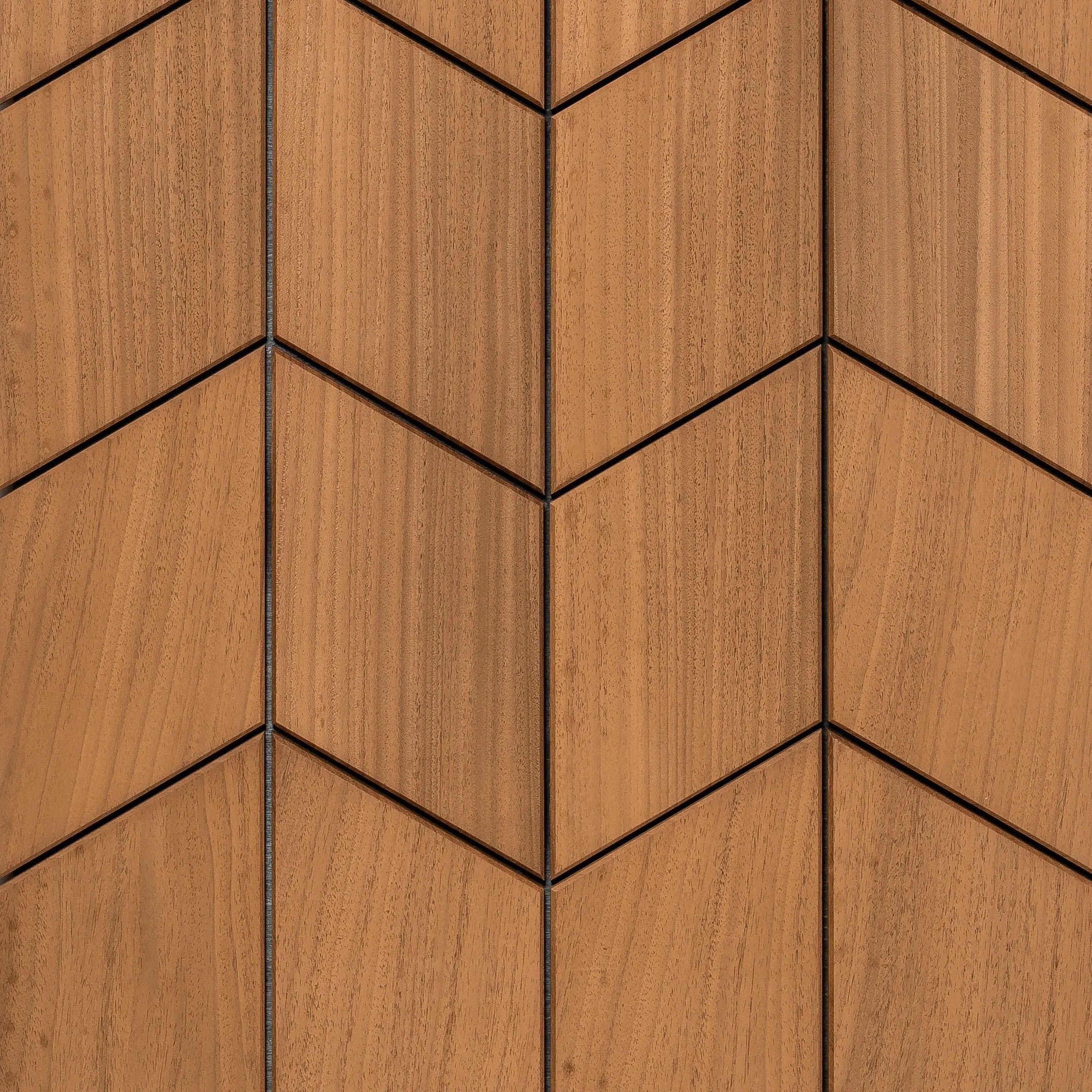 Diese Paneele bestehen aus wärmebehandeltem Abachi-Holz. Die Behandlung verbessert die Stabilität des Holzes und macht es für eine Vielzahl von Innenraumlösungen geeignet.