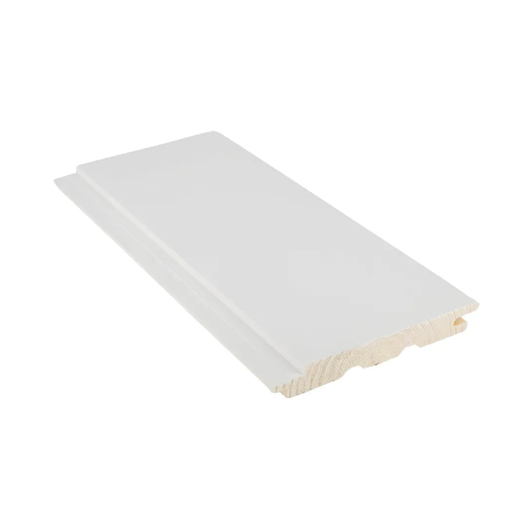 Kotimaisesta männystä valmistettu 15x120x2370 valkoinen STS3 -profiilinen sisustuspaneeli.