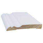 Eine aus astfreiem Kiefernholz gefertigte weiße Zierfußleiste eignet sich gut für trockene Innenräume.