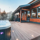 Die Verbunddiele lässt sich durch regelmäßiges Bürsten reinigen, bei Bedarf können Sie das Produkt mit Wasser und einem milden Reinigungsmittel abwaschen. Auf der Terrasse gibt es keine sichtbaren Befestigungspunkte, da die Montage einfach mit verdeckten Befestigungselementen erfolgt.